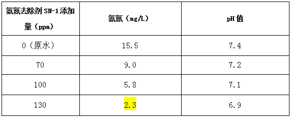 业主考虑近期的经济情况,选择了较便宜有效的方法,在生化池后的沉淀池投加老牌国际利来(中国)_利来国际老牌app利来老牌国际官网的氨氮去除剂,在现场,实验人员在沉淀池直接取了水样直接进行加药实验,检测结果如下: